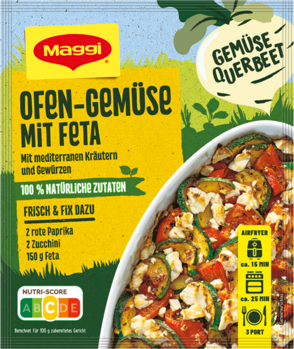 Dzięki tej mieszance przypraw Maggi do warzyw z piekarnika z fetą możesz z łatwością wprowadzić do swojego domu popularne w mediach społecznościowych danie. Wystarczy wymieszać wybrane warzywa z fetą i mieszanką przypraw. Aromatyczne, lekko słodkie i pikantno-kremowe doznanie smakowe powstaje w piekarniku.