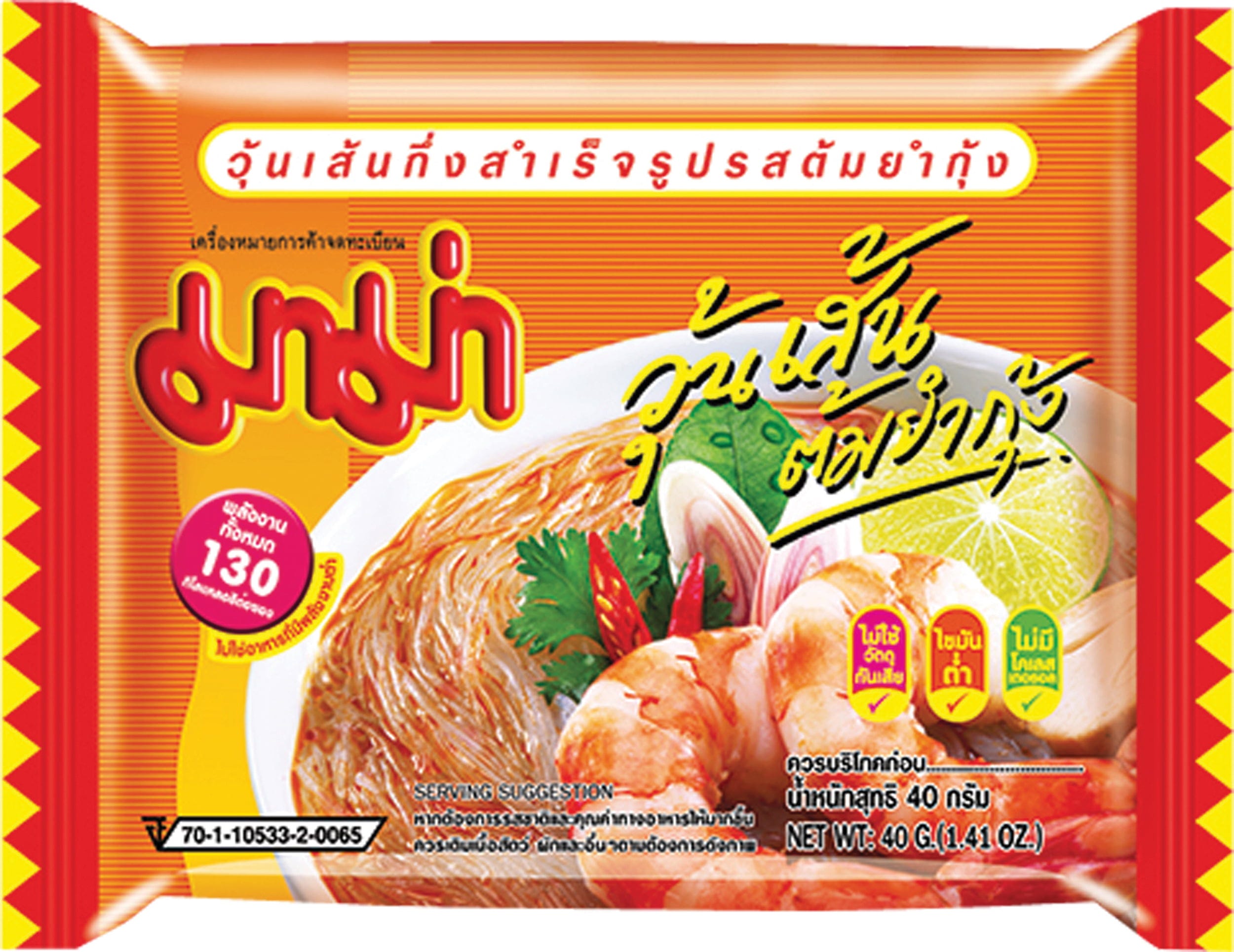 Pikantna zupa błyskawiczna z makaronem szklanym MAMA zachwyca gorącym i kwaśnym bulionem tom yum, doprawionym chili, szalotką i typowymi tajskimi przyprawami. Delikatny szklany makaron dobrze wchłania intensywny bulion i zapewnia aromatyczną przyjemność z egzotycznymi smakami.