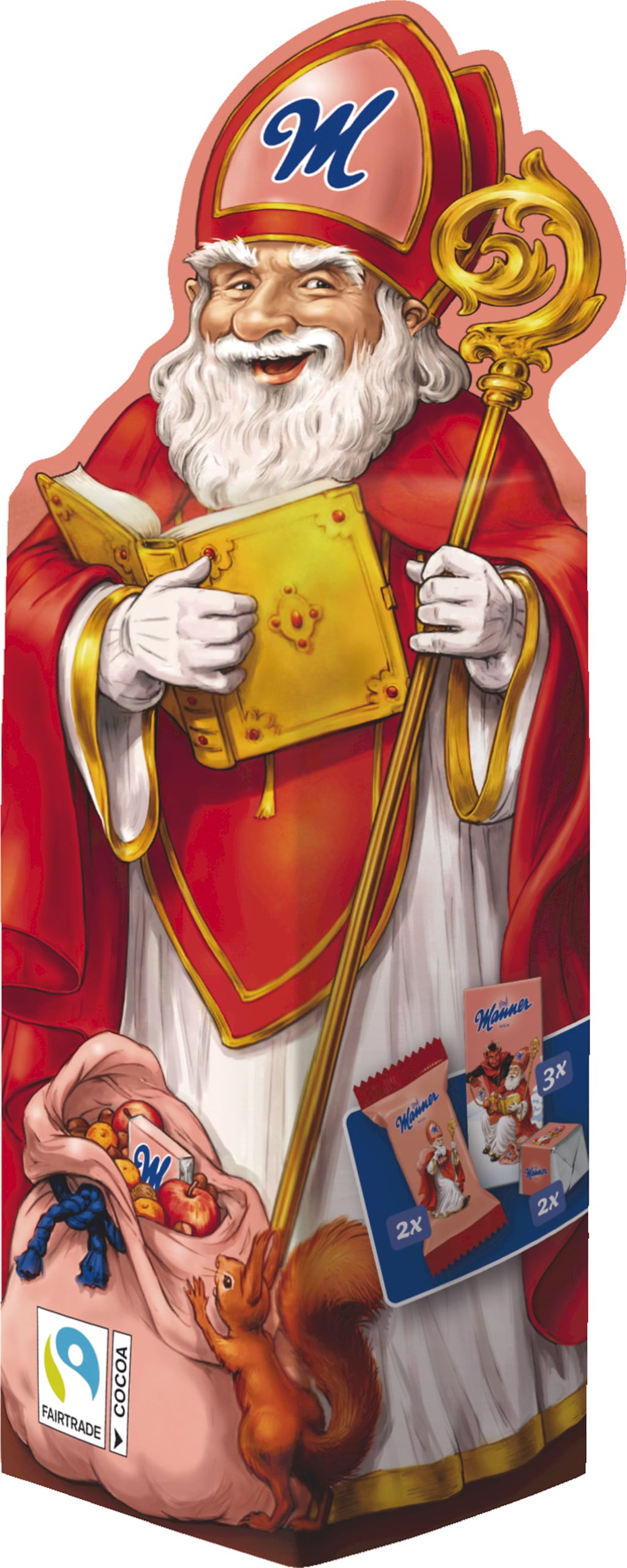 Czerwony Św. Mikołaj Manner sprawia, że oczy dzieci zabłyszczą. Opakowanie prezentowe w tradycyjnym designie wypełnione jest wspaniałymi przysmakami marki Manner.