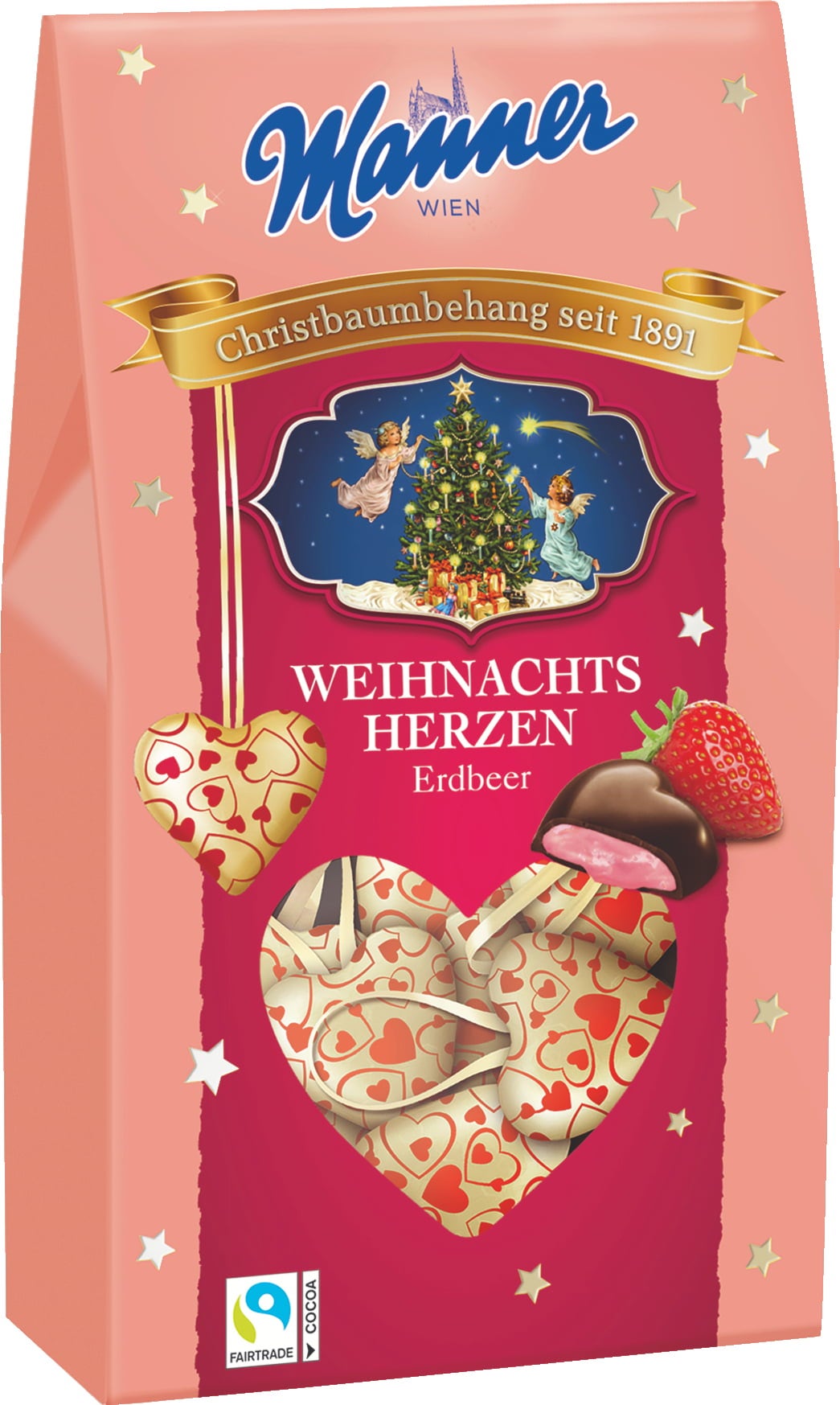 Manner Truskawkowe serca bożonarodzeniowe, 210 g