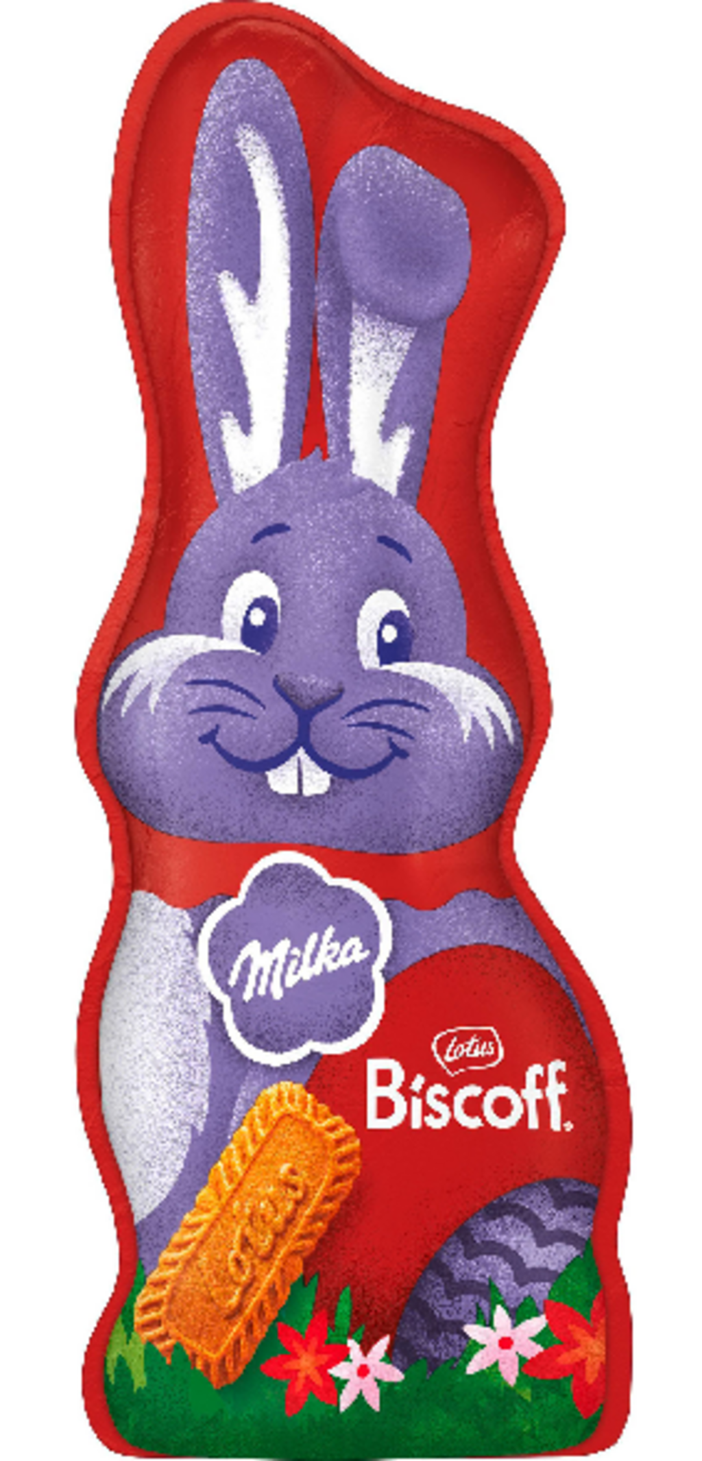 Milka Zajączek Biscoff to połączenie klasycznej, rozpływającej się w ustach czekolady Milka z alpejskiego mleka z chrupiącymi kawałkami herbatników Lotus Biscoff, co zapewnia wyjątkowo aromatyczny smak. Lekko karmelizowana nuta kawałków Biscoff doskonale harmonizuje ze słodką czekoladą i zapewnia zróżnicowane doznania smakowe. Dzięki wesołemu wzornictwu, ten zajączek przyciąga wzrok w wielkanocnym koszyku lub na talerzu. Niezależnie od tego, czy jest to drobny upominek, czy też czekoladowy zajączek, który urozmaici wielkanocne smakołyki.
