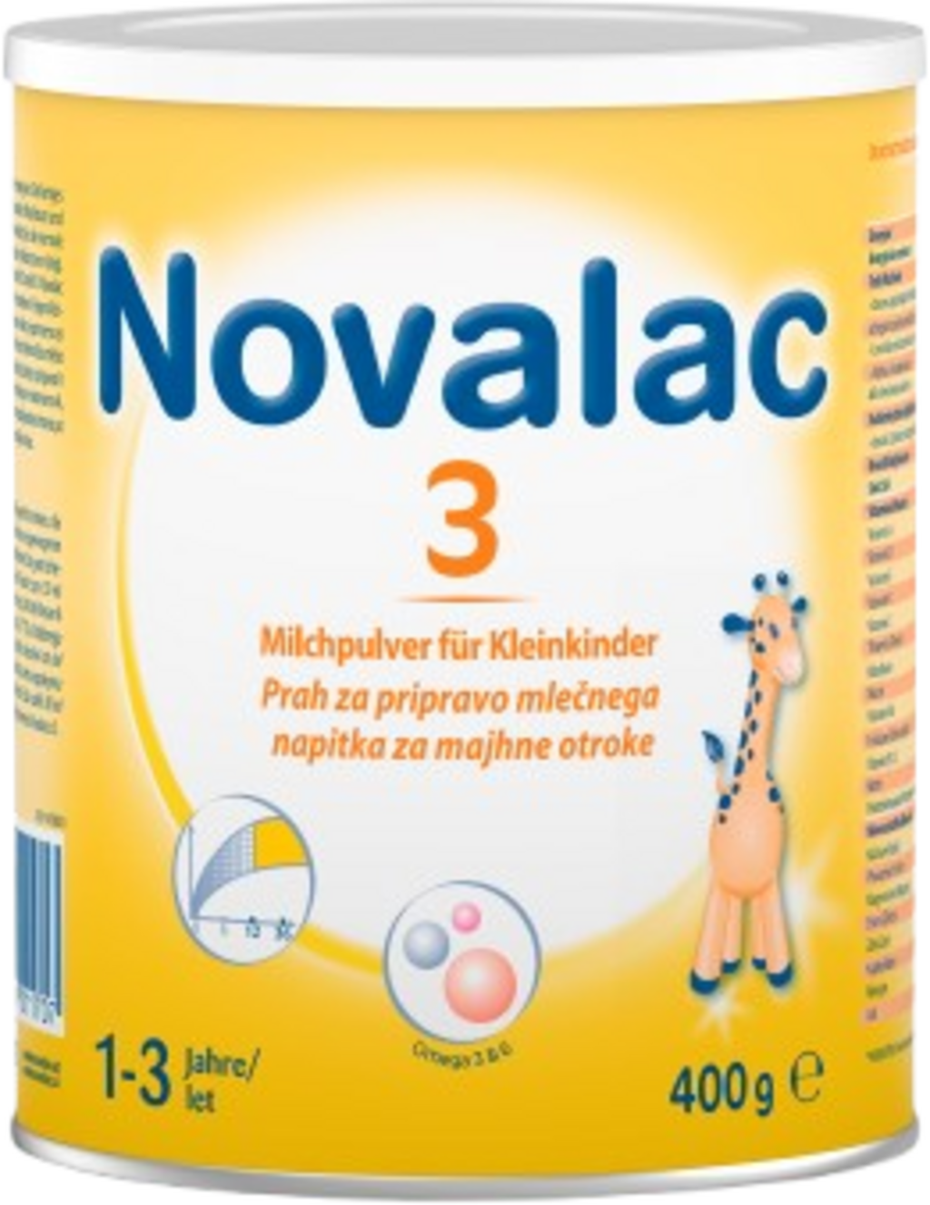 Novalac 3 to mleko w proszku dla dzieci w wieku od 1 do 3 lat. Wybrane składniki są idealnie dopasowane do potrzeb dziecka. Mleko w proszku zawiera wiele ważnych witamin, minerałów i niezbędnych nienasyconych kwasów tłuszczowych. Novalac 3 może być stosowany jako uzupełnienie karmienia po Novalac 2.