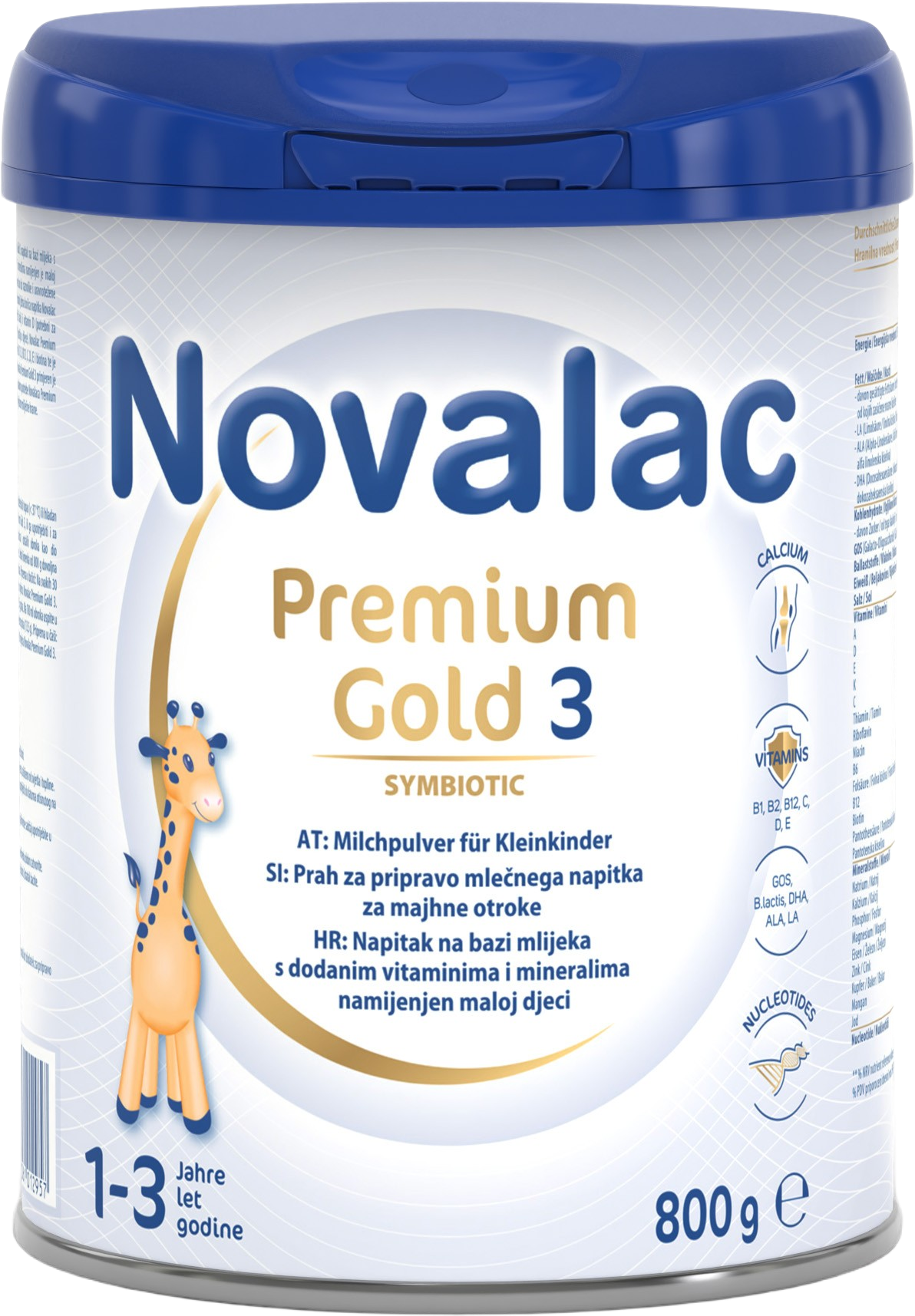 Novalac Premium Gold 3 jest preparatem mlecznym dla małych dzieci, specjalnie opracowanym w celu zaspokojenia potrzeb żywieniowych dzieci w wieku od 1 do 3 lat. Może być stosowany jako uzupełnienie w ramach zróżnicowanej i zbilansowanej diety.