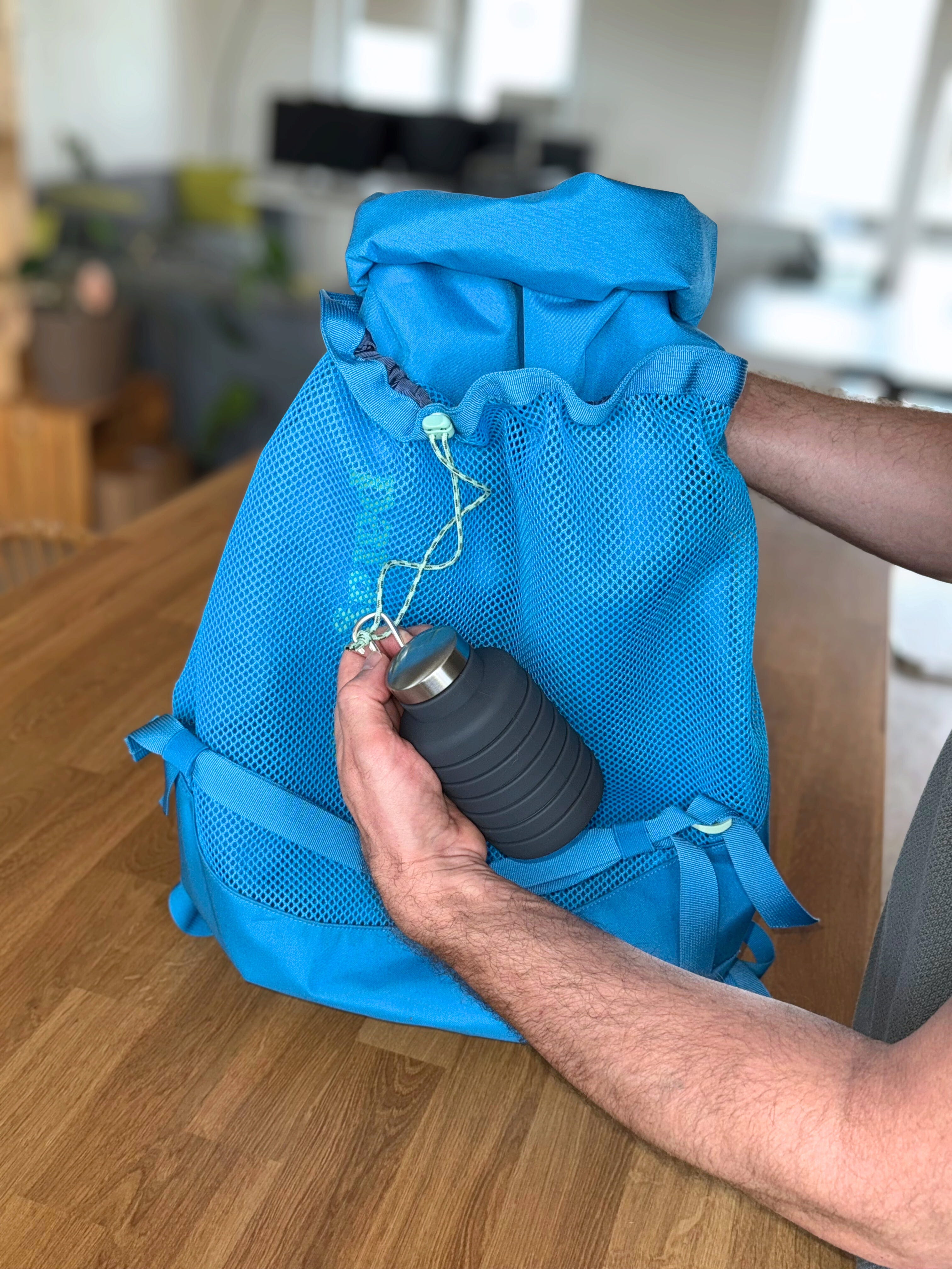 Ta składana silikonowa butelka do picia jest idealnym towarzyszem w podróży, niezależnie od tego, czy podróżujesz, czy uprawiasz sport. Jest bardzo praktyczna i kompaktowa, można ją zmniejszyć do około jednej trzeciej objętości, a także posiada karabińczyk, dzięki czemu można ją łatwo przymocować do plecaka. Butelka jest szczelna, nawet w przypadku napojów gazowanych, i można ją myć w zmywarce. Idealne rozwiązanie dla każdego, kto kocha podróże i jest zaangażowany w zrównoważony rozwój.