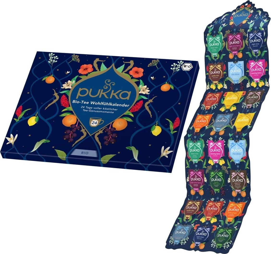 Wysokiej jakości mieszanki herbat osłodzą każdy dzień okresu przedświątecznego i przyniosą radość. Kalendarz adwentowy PUKKA zawiera wyjątkowe kompozycje herbat w torebkach, które urozmaicą wieczory w adwencie – idealny pomysł na prezent.