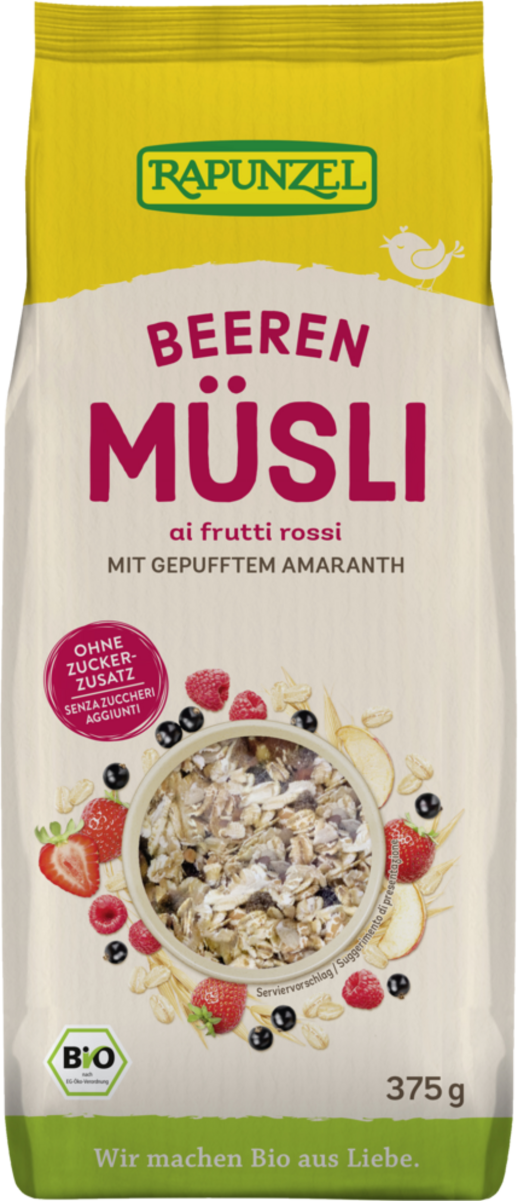 Rapunzel Bio musli z alpejskiego szarłatu z owocami, 375 g