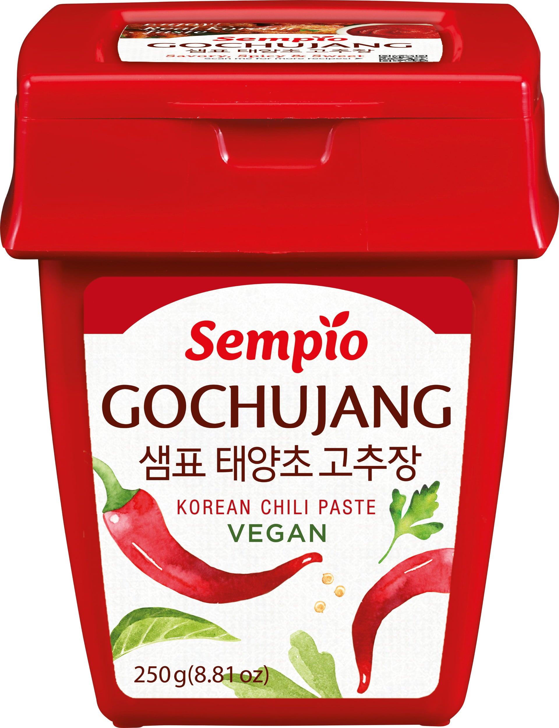 Ta ostra pasta chili firmy Sempio jest wytwarzana z suszonych na słońcu czerwonych papryczek chili i rafinowana ryżem i syropem ryżowym. Rezultatem jest ostra, pikantna pasta o subtelnej słodyczy.