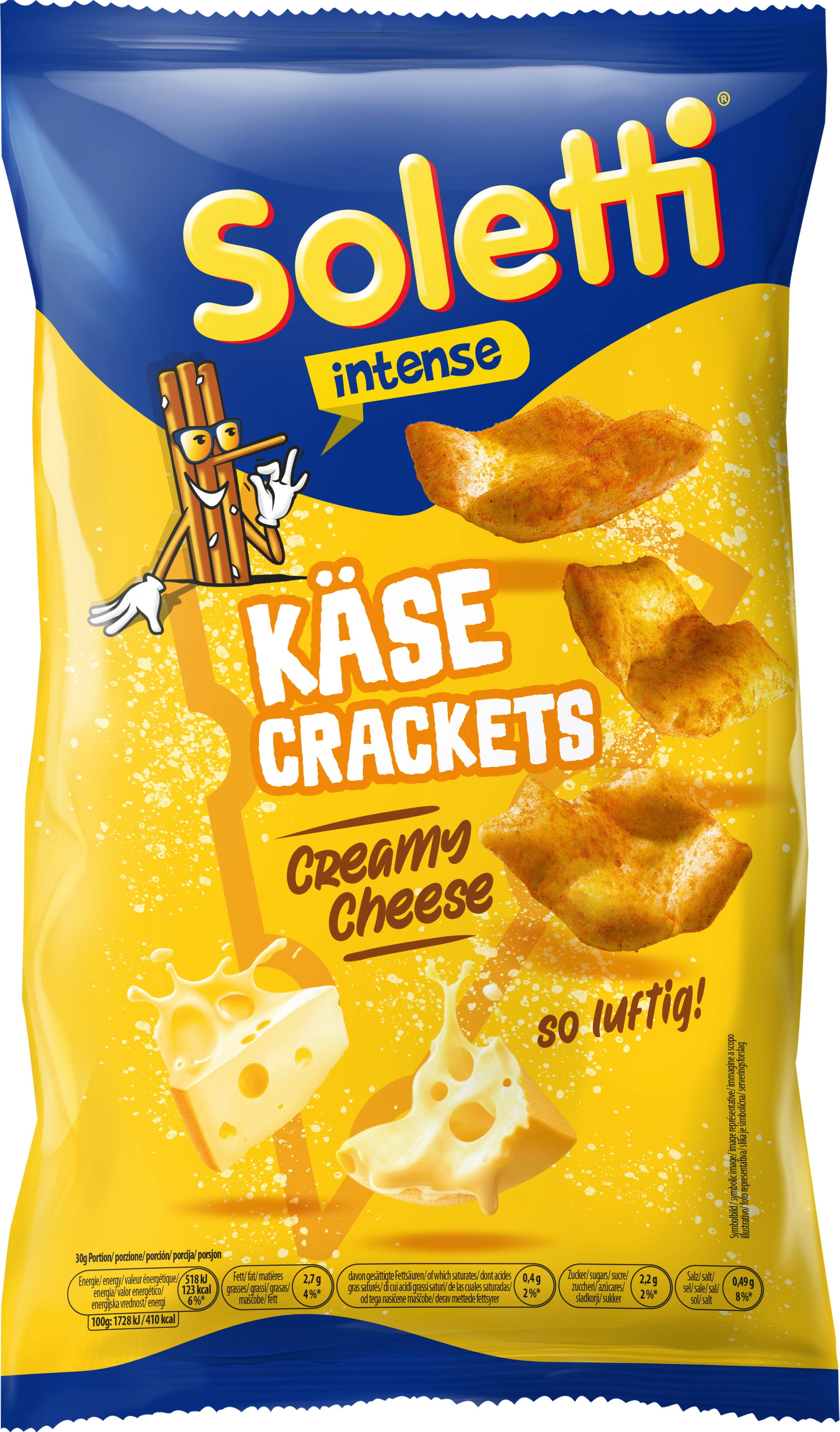Chrupiące krakersy Soletti Käse Crackets Creamy Cheese to idealna przekąska dla miłośników serowych smaków. Intensywny, kremowy aromat sera łączy się z lekką, chrupiącą strukturą, tworząc wyjątkowo przyjemne doznanie przy każdym kęsie. Doskonałe jako przekąska na co dzień, do dzielenia się lub jako smaczny dodatek do spotkań.