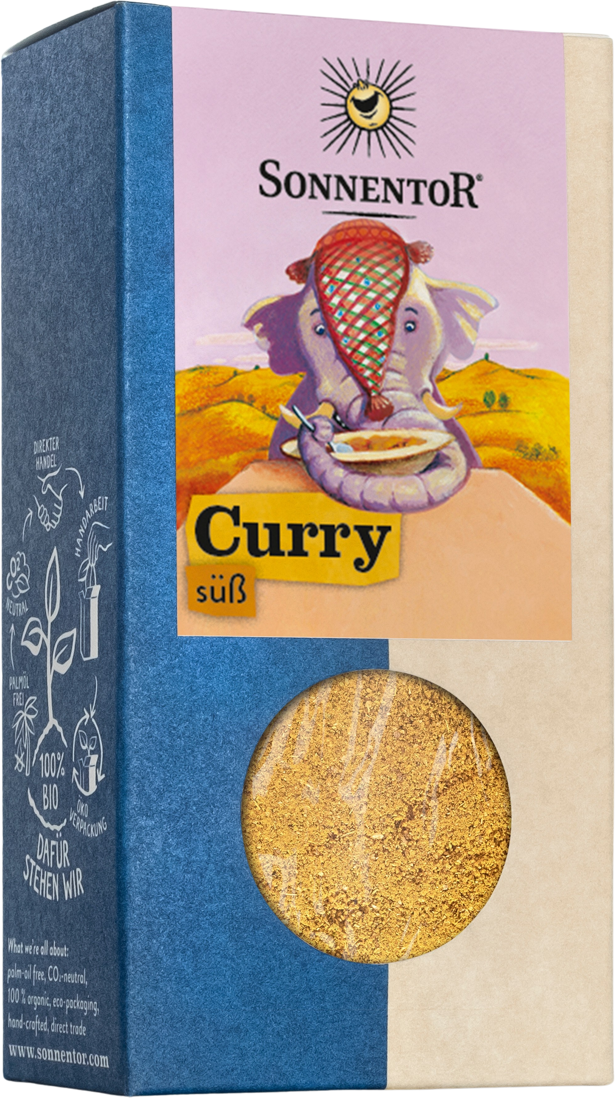 Żółty kolor curry pochodzi od kurkumy, składnika, którego nie może zabraknąć w żadnej mieszance curry. Łagodnie-aromatyczne w smaku, słodkie curry jest doskonałym dodatkiem do gulaszu, potraw rybnych, zapiekanek, tajskiej kuchni. Pyszne dania z curry jak ryż, kurczak lub warzywa są także wspaniale udoskonalane.