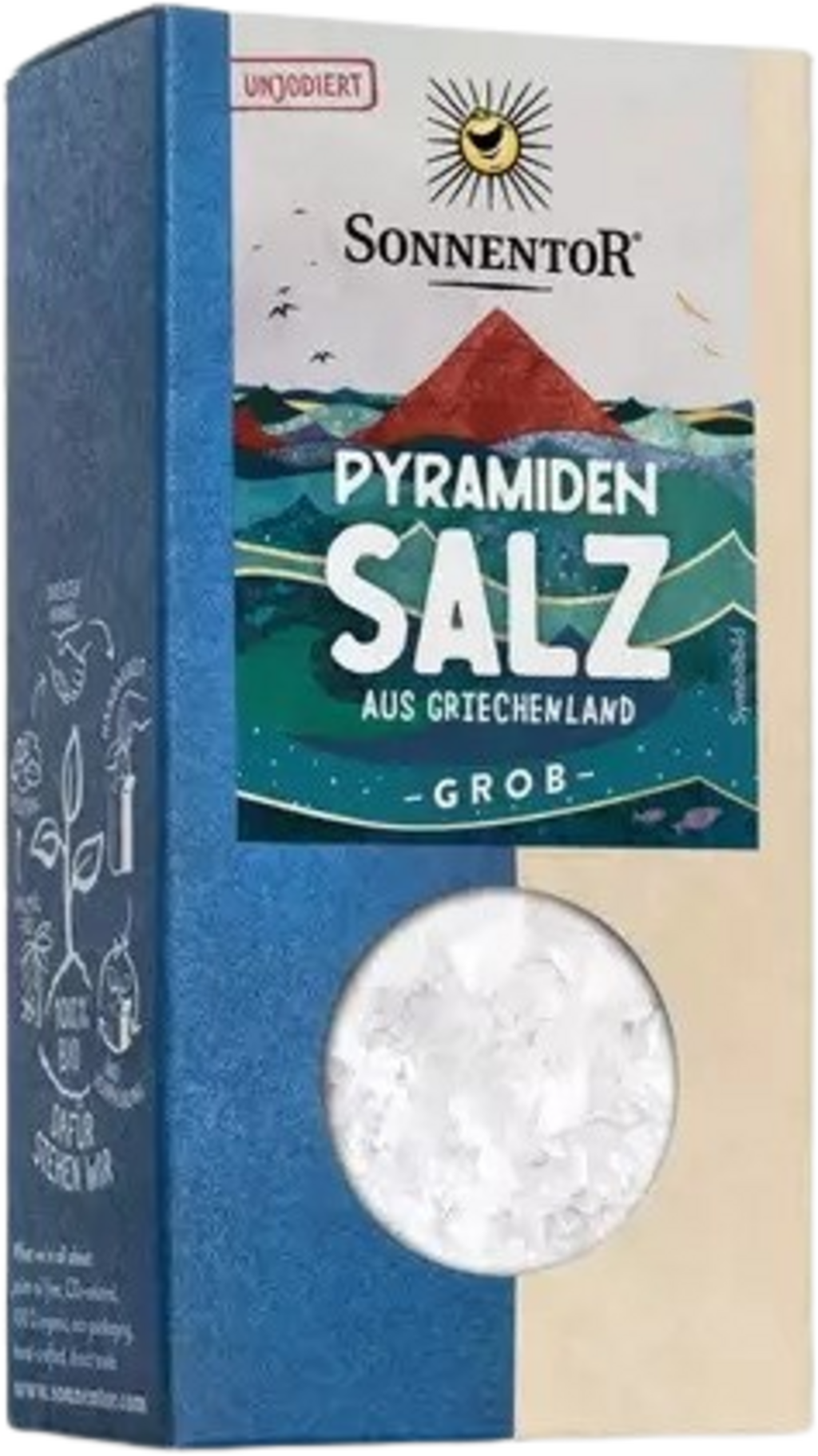Sól ta pochodzi z czystej, niejodowanej soli morskiej z Grecji, a swoją nazwę zawdzięcza płatkom w kształcie piramidek. Świetna konsystencja, która wyśmienicie wykończy każdą potrawę! Ponieważ szybko rozpływa się na języku idealnie nadaje się jako sól stołowa, którą doprawisz sałatki, półmiski, chleb czy desery karmelowe.