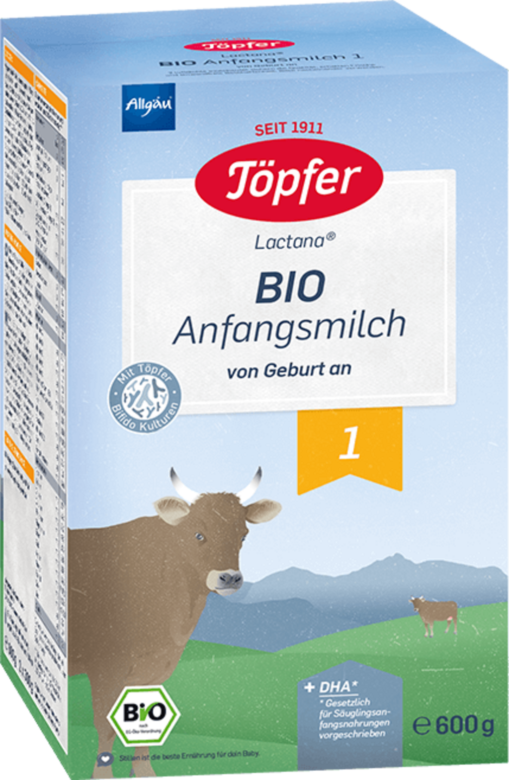 Bio preparat do początkowego żywienia niemowląt na bazie mleka krowiego 1 od Töpfer, przygotowany z bio-mleka z regionu Allgäu, jest specjalnie dostosowany do potrzeb noworodków. Może być podawany jako uzupełnienie mleka matki lub jako wyłączne źródło pożywienia od pierwszych dni życia aż do końca okresu karmienia butelką.