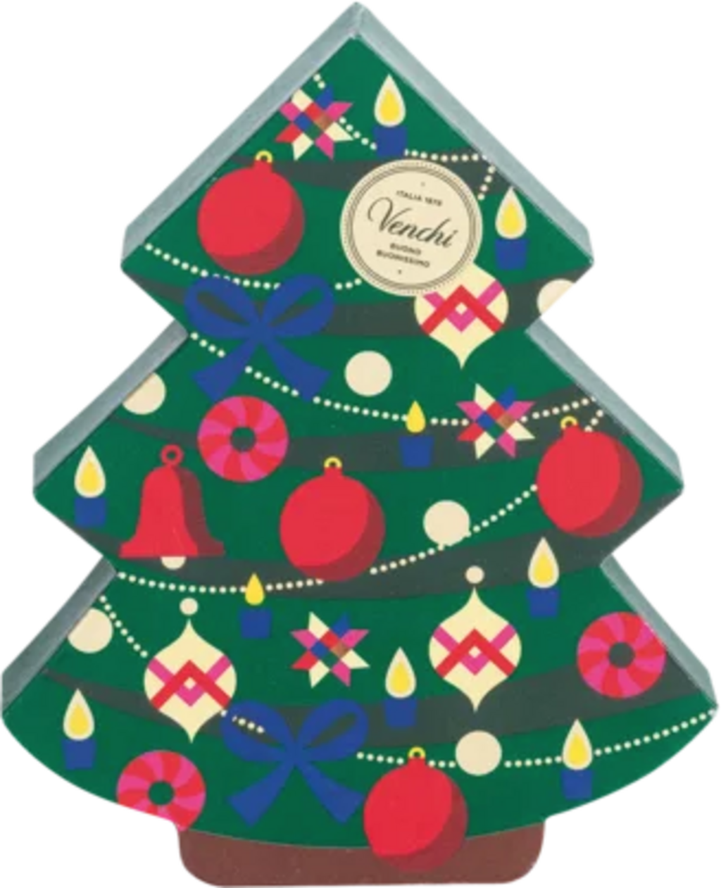 Podaruj swoim bliskim delikatne czekoladki - ta piękna kreacja od Venchi to zawsze właściwy wybór. Blaszane pudełko w kształcie choinki zawiera wyśmienite czekoladowe praliny z najlepszym kremowym nadzieniem.