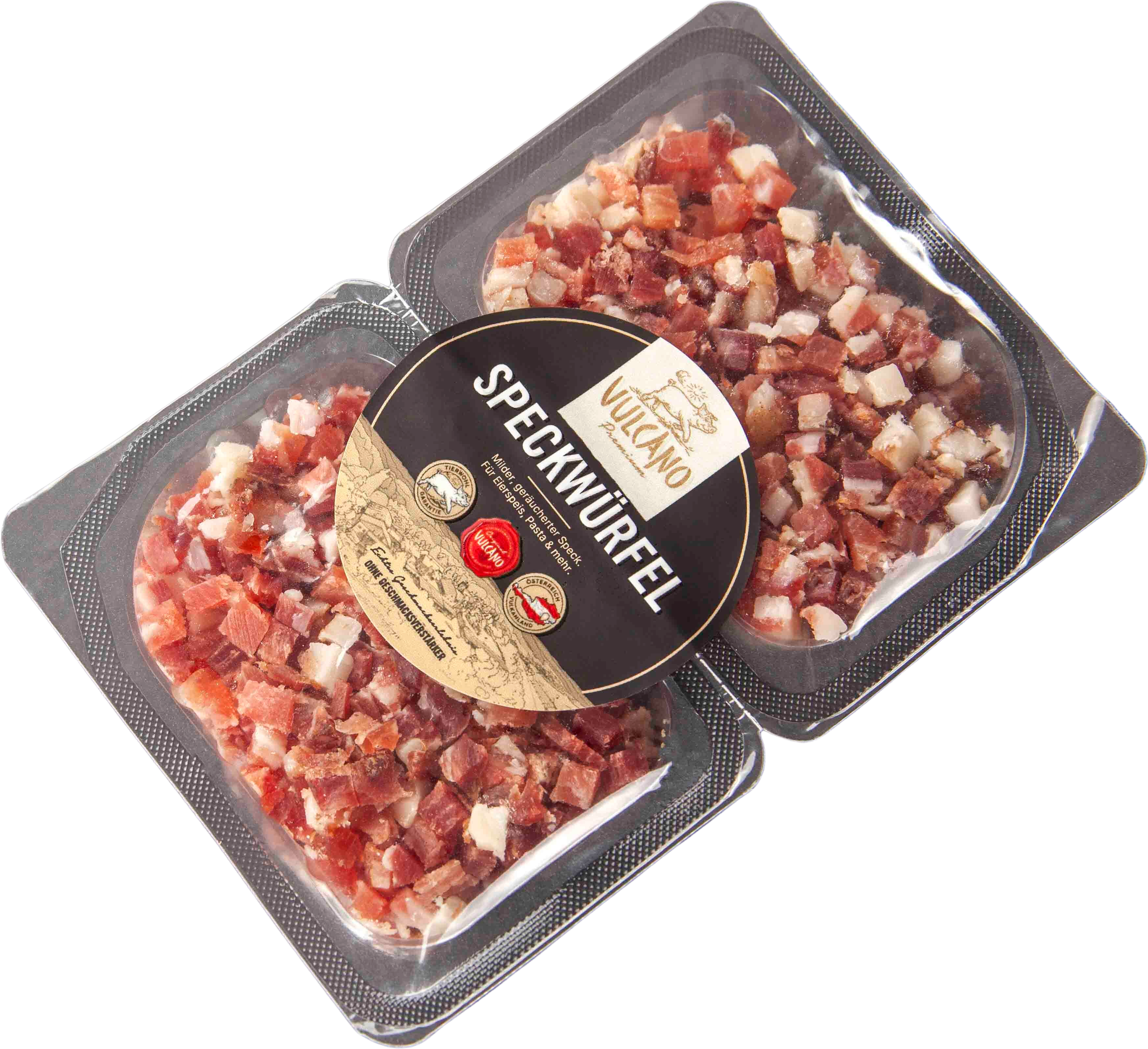 Kostki boczku Vulcano są wytwarzane z najlepszej wieprzowiny i tradycyjnie wędzone. Nadają potrawom takim jak makarony, zapiekanki czy dania z jajek mocny, wędzony smak. Już pokrojony - po prostu rozkoszuj się!