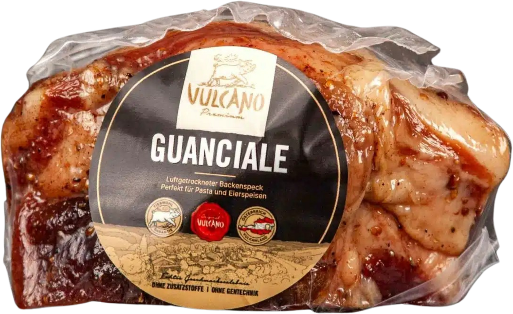 Pokrój guanciale drobno i ciesz się smakiem! Idealnie nadaje się również do przygotowania klasycznego włoskiego spaghetti carbonara!