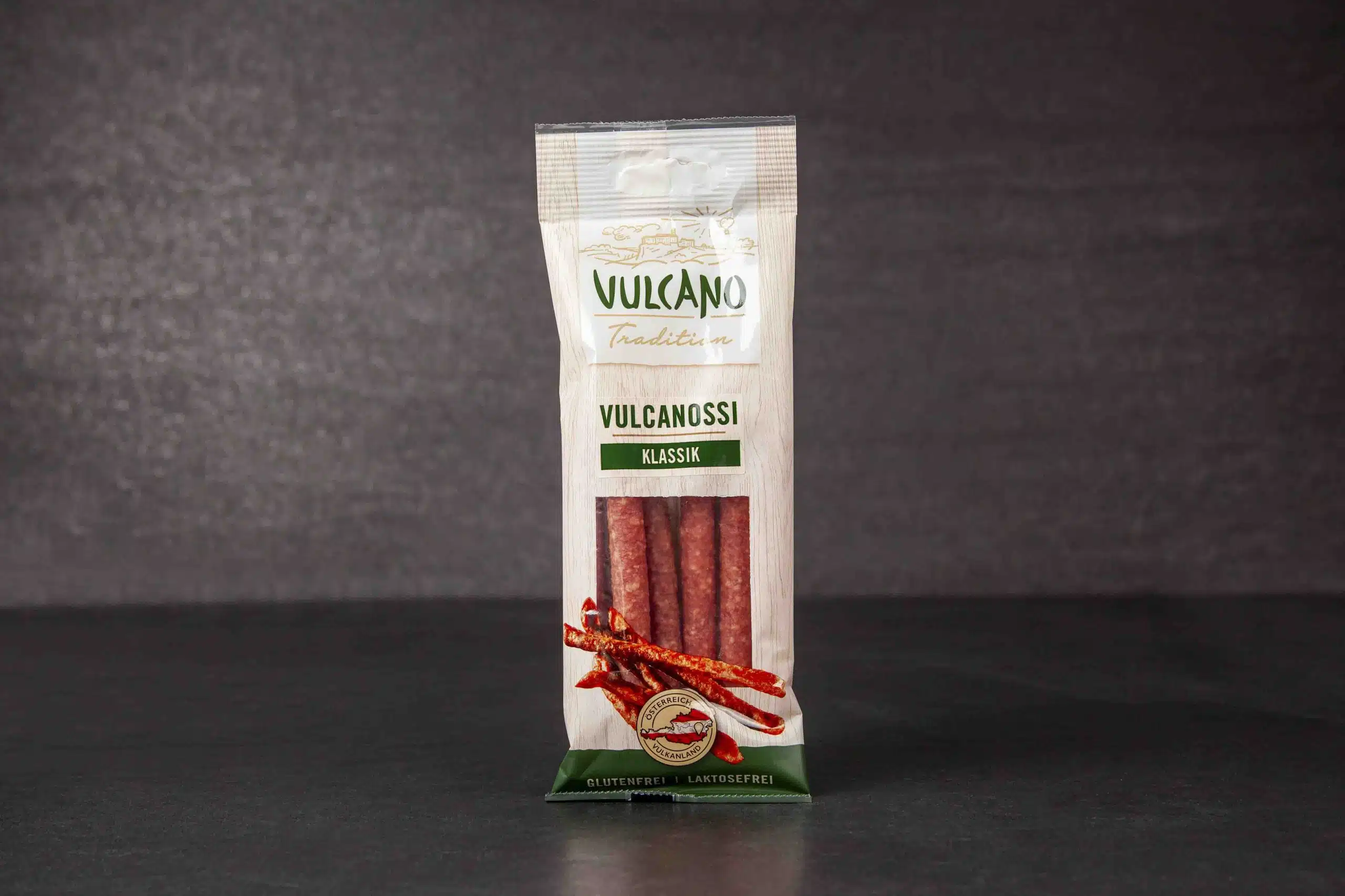 Kiełbasy surowe Vulcano są przetwarzane wyłącznie z najlepszego surowego mięsa i boczku wieprzowego. Wysokiej jakości surowce i delikatne przyprawy z wędzoną nutą łączą się, tworząc przyjemne doznania smakowe.