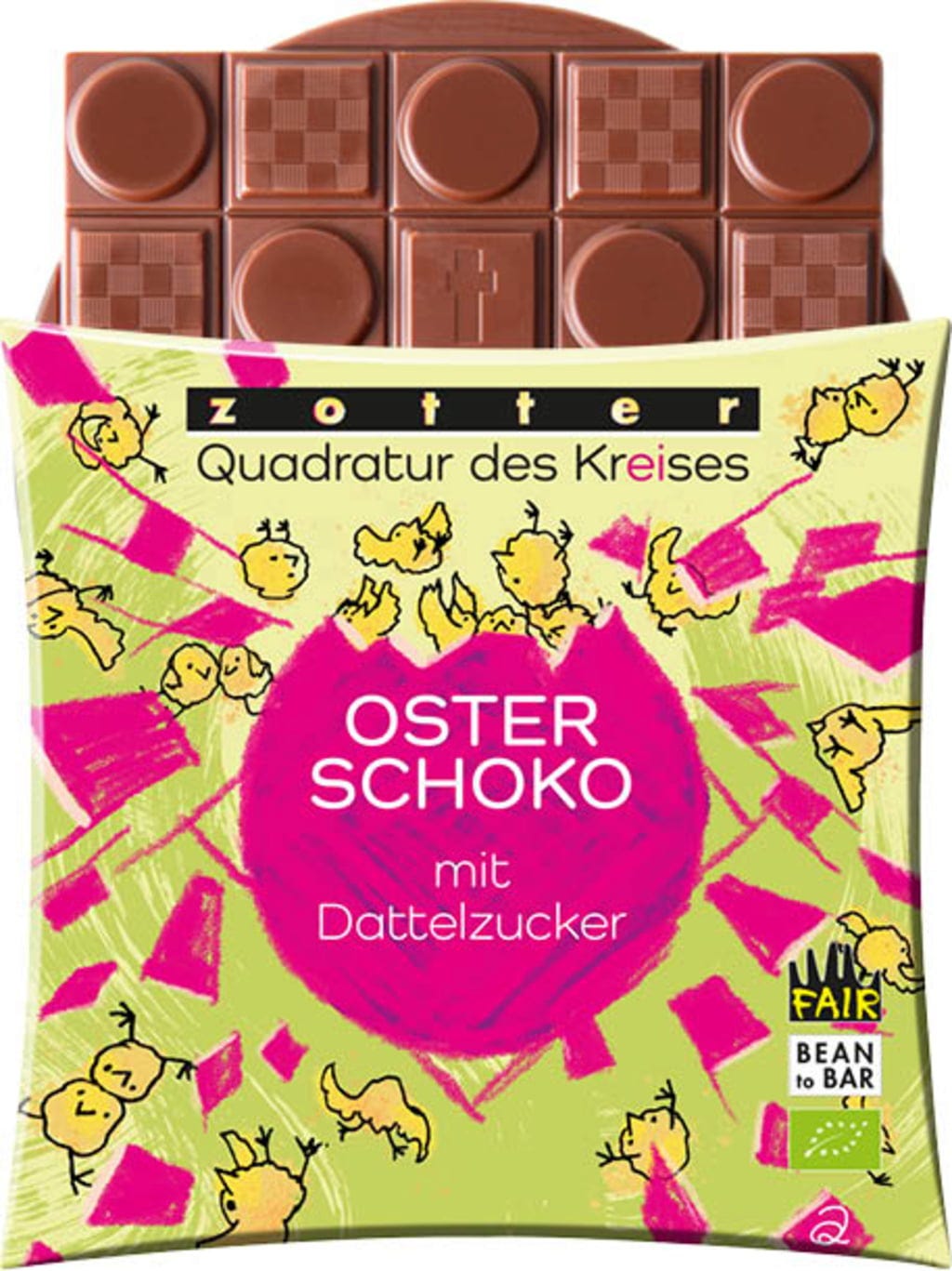Zotter Schokoladen Bio kwadratowe koło czekolada wielkanocna z cukrem daktylowym, 70 g