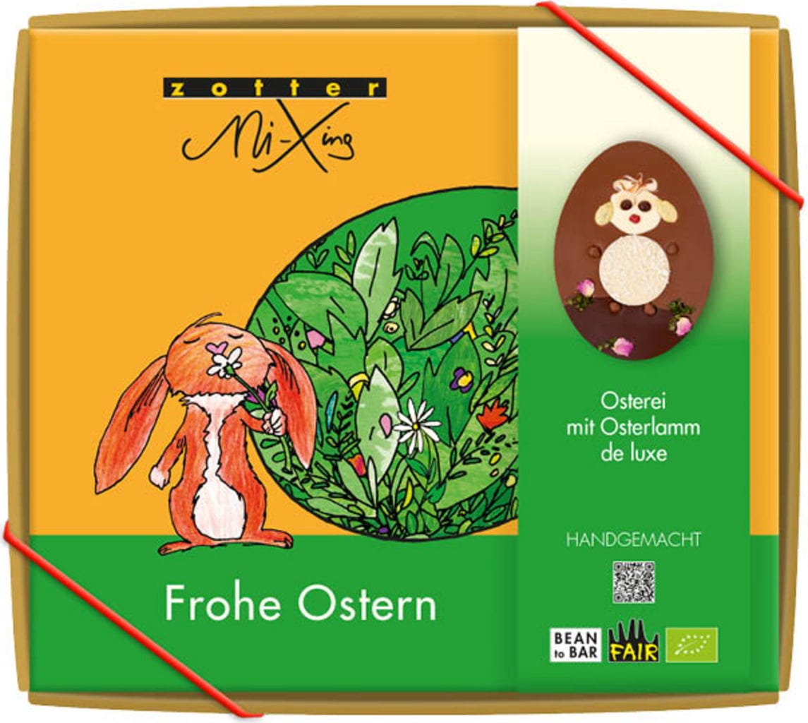 Zotter Schokoladen Bio MiXing jajko wielkanocne de Luxe z wielkanocnym barankiem, 100 g
