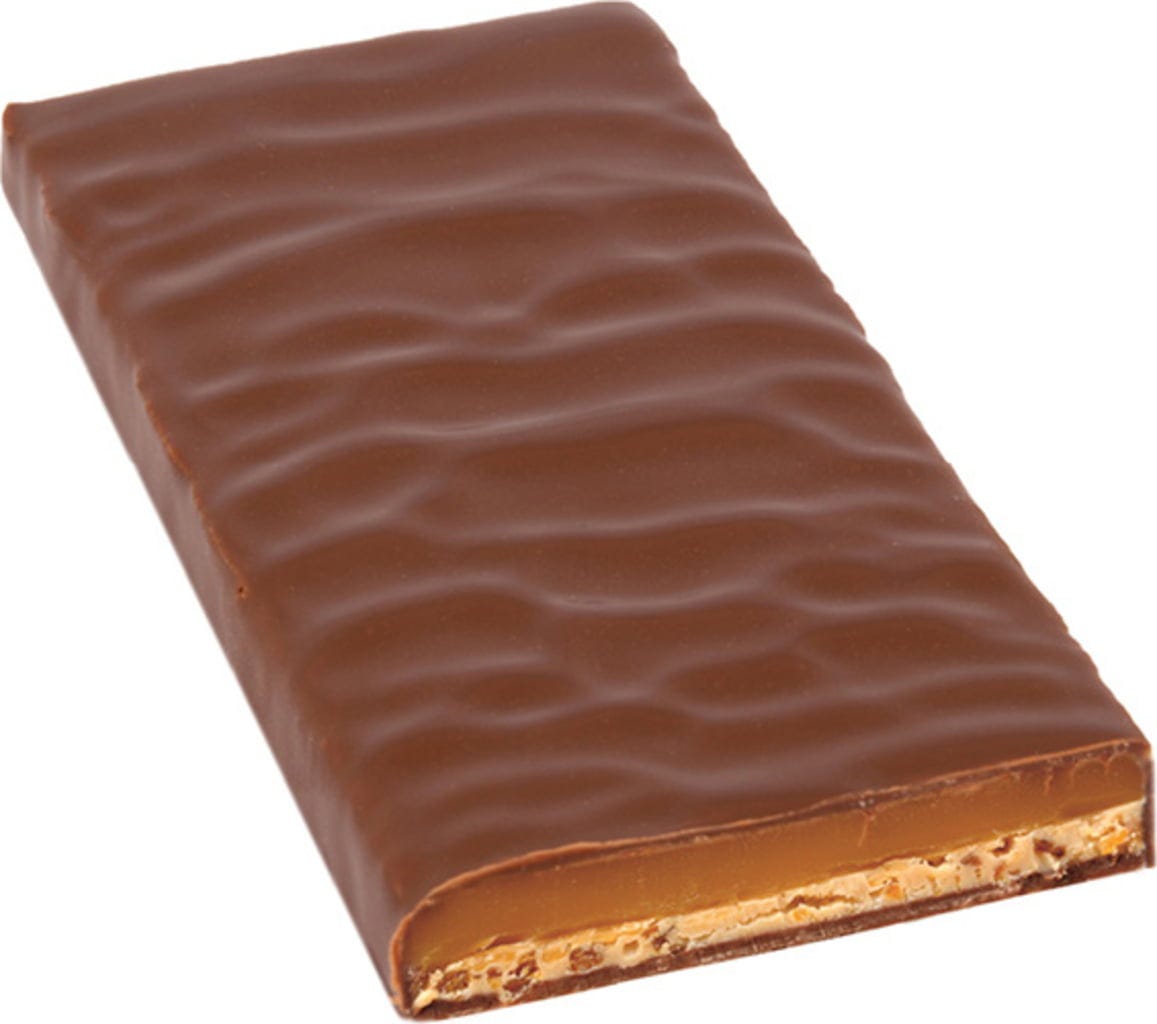 Naturalny karmel został połączony z masłem. Do tego warstwa nugatu migdałowego, a pomiędzy chrupiące płatki karmelowe. Całość oblana ciemną czekoladą górską o zawartości 50 procent kakao.