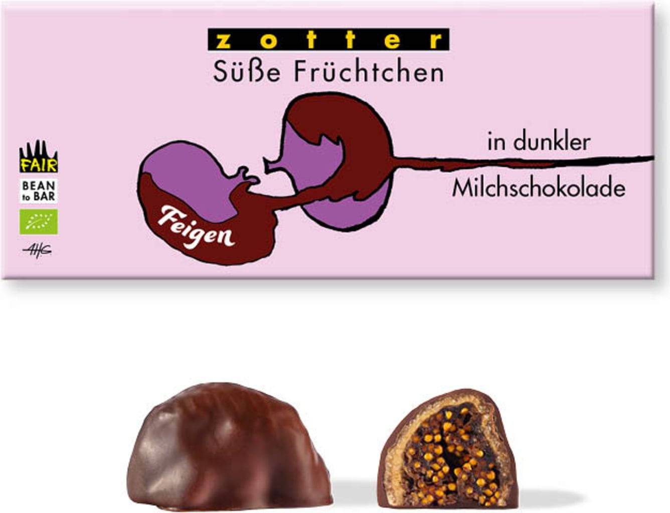 Zotter Schokoladen Figi w ciemnej, mlecznej czekoladzie, 80 g