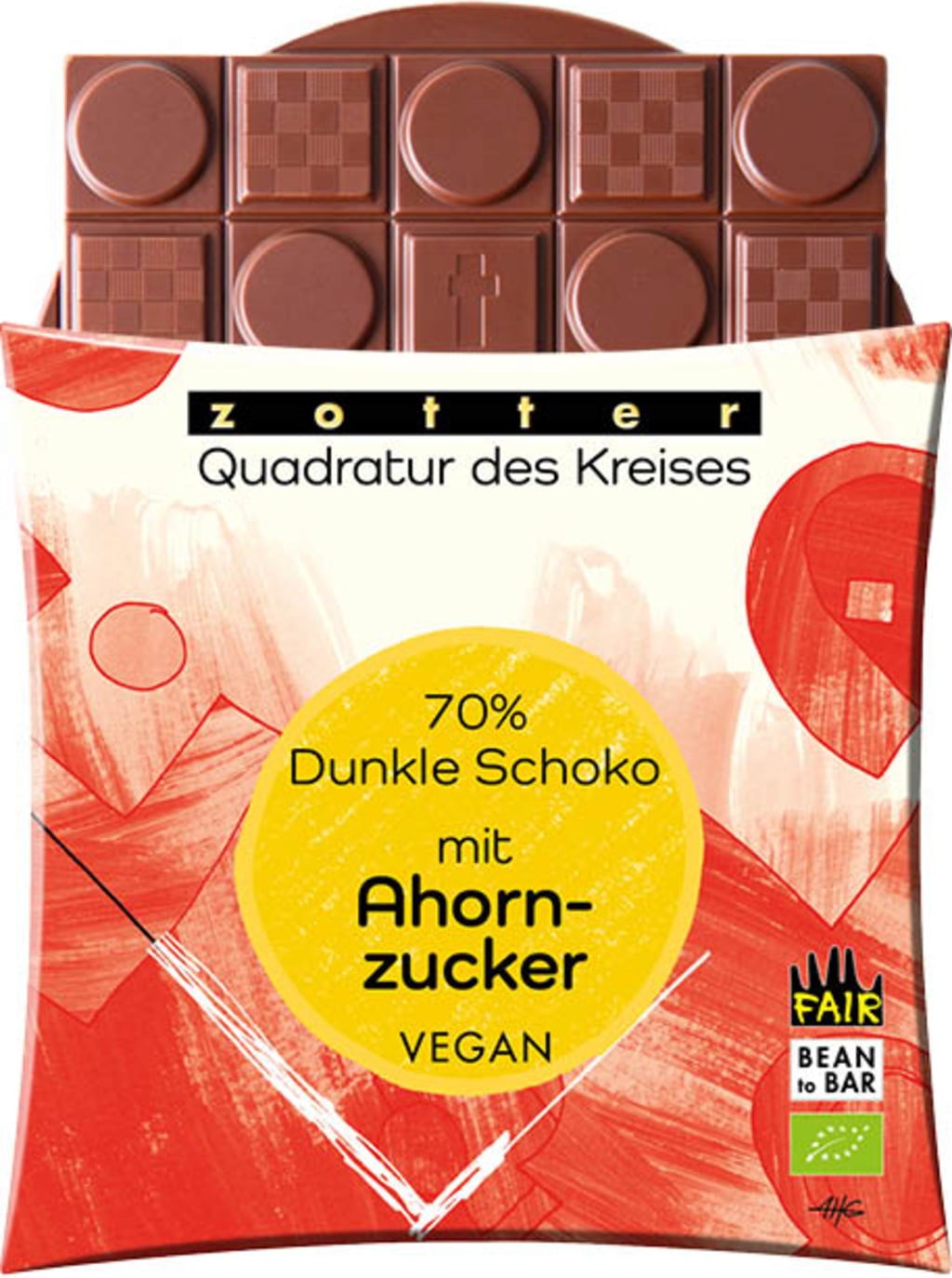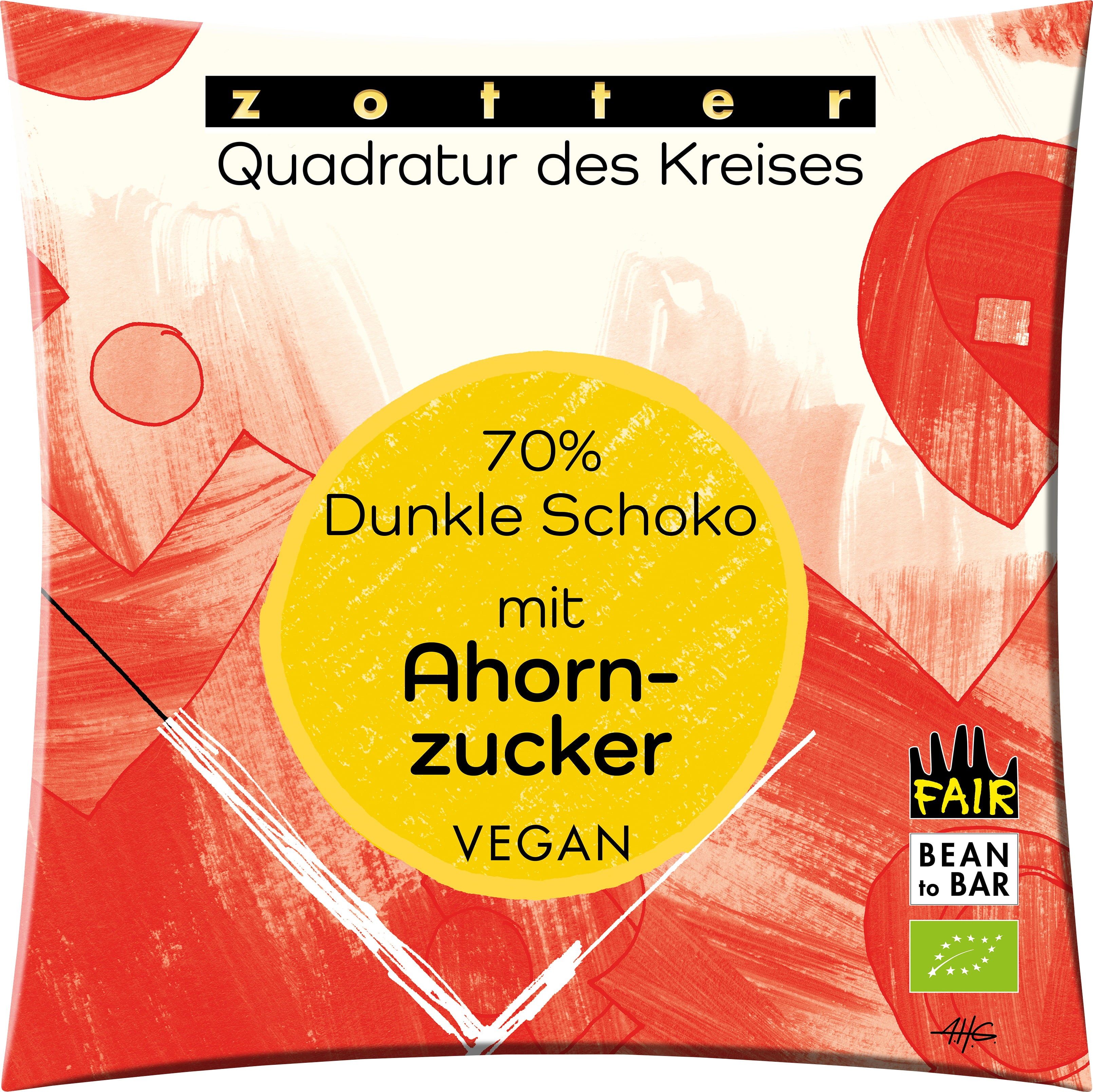 Zotter Schokoladen Kwadratowe koło 70% ciemnej czekolady z cukrem klonowym, 70 g