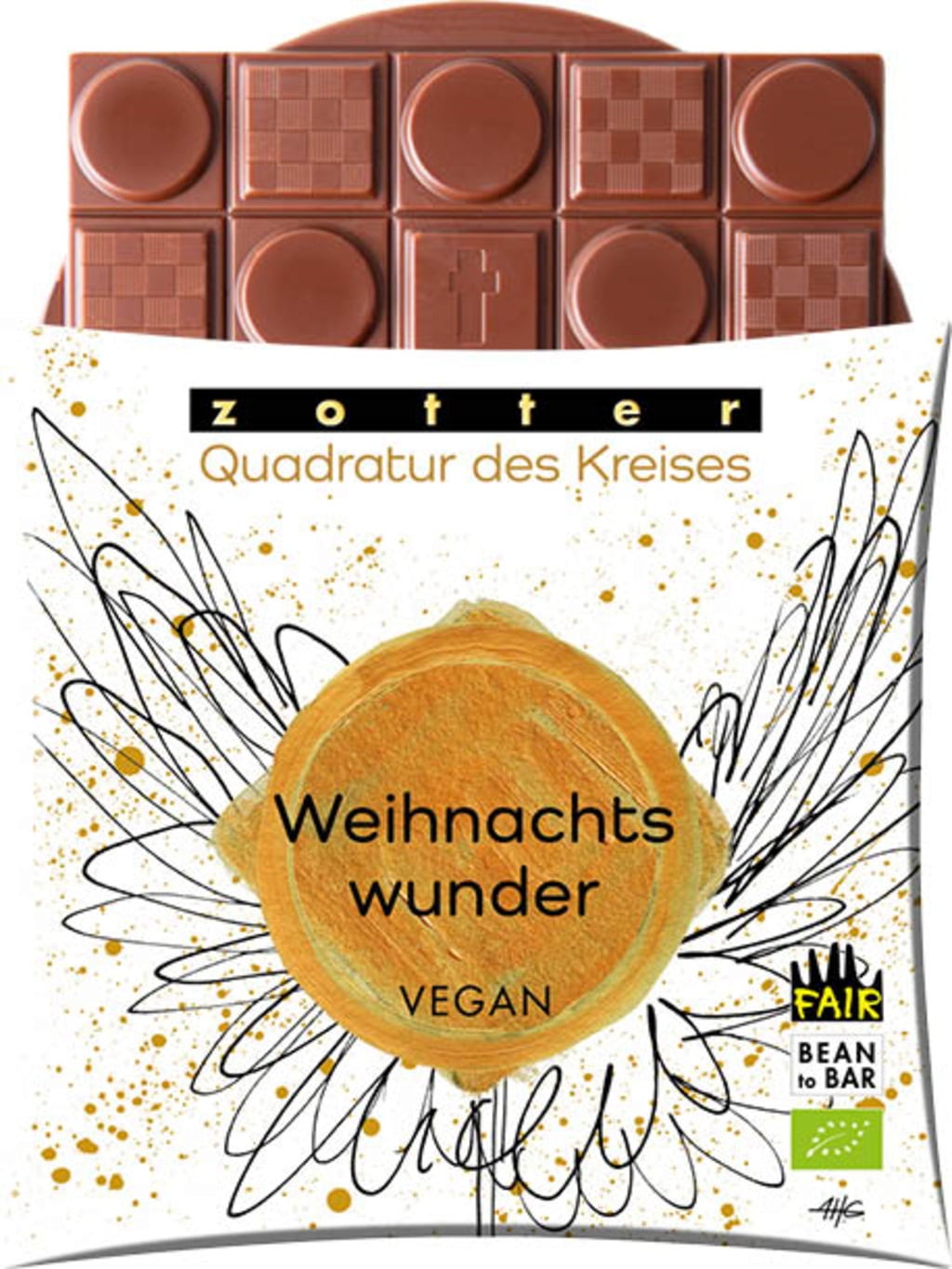 "Bożonarodzeniowy cud" to kolejna czekolada w formie kwadratowego koła marki Zotter. Jest to pozycja obowiązkowa dla wszystkich fanów kokosa: tabliczka kokosowo-karmelowa ma wyraźny aromat kokosa. Składa się z 40% kakao, mleka kokosowego i zmielonych wiórków kokosowych, całość posłodzona cukrem z kwiatów kokosa. Słodka przyjemność dla wszystkich, którzy lubią wyjątkowe słodycze.