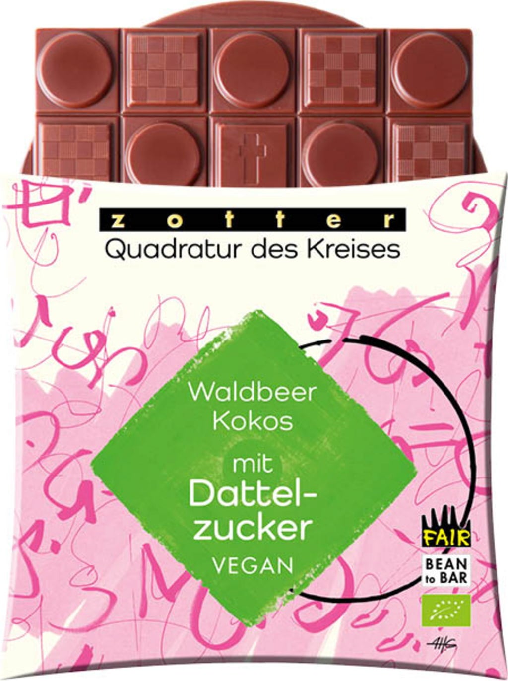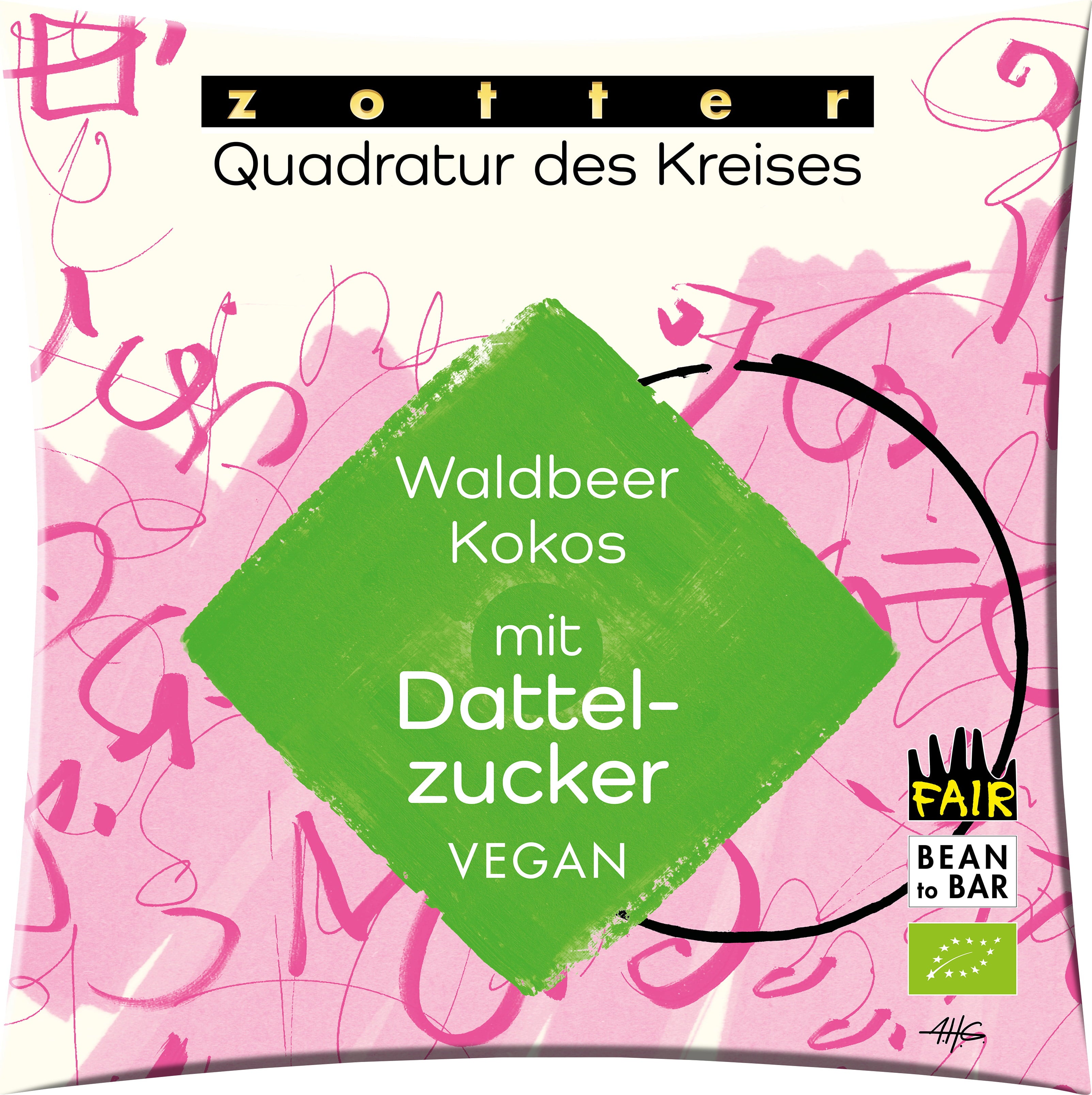 Zotter Schokoladen Kwadratowe koło dzikie jagody z kokosem i cukrem daktylowym bio, 70 g