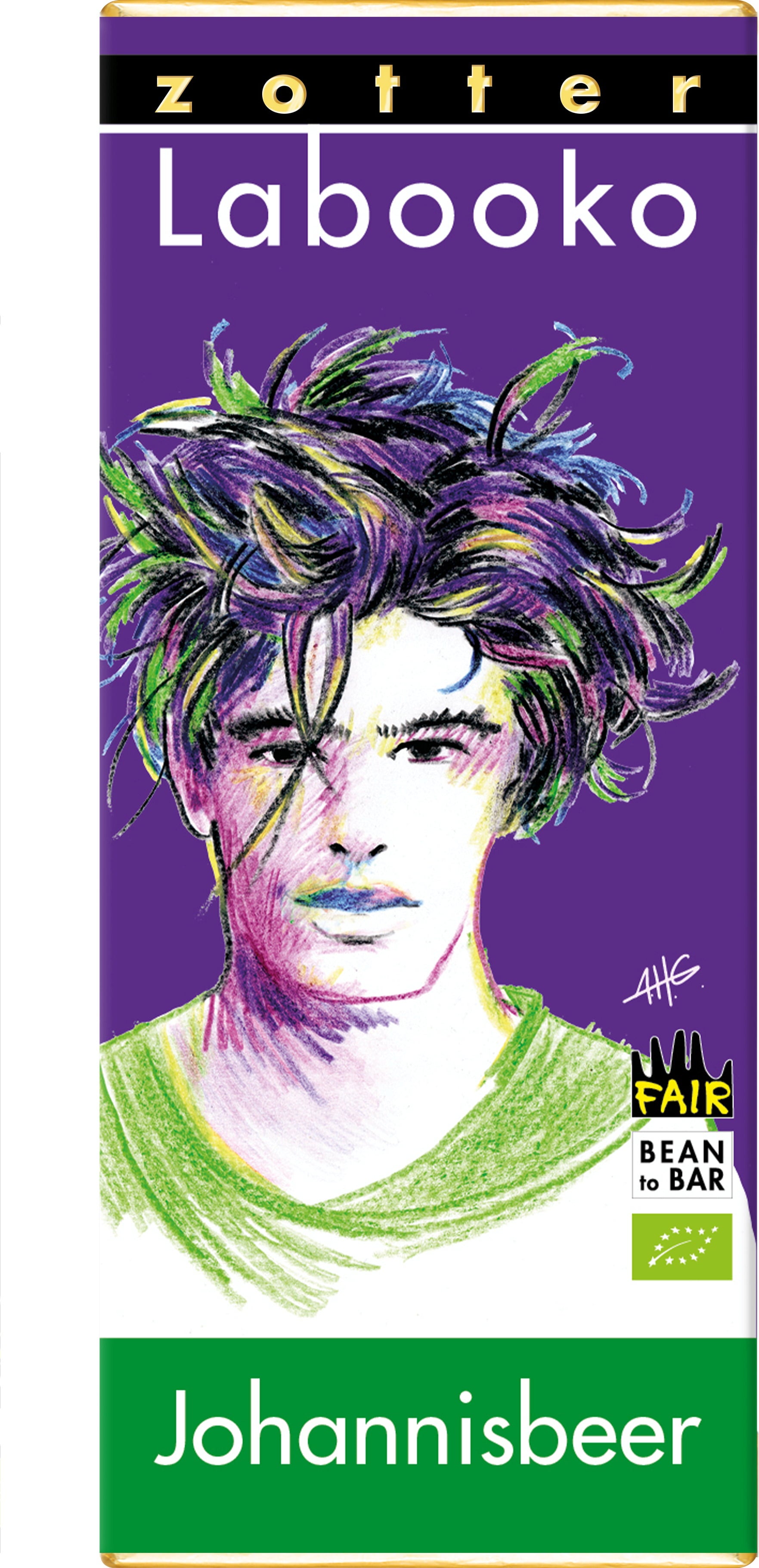 Owocowa czekolada nowej generacji: jest w niej tyle porzeczek, że tabliczka świeci na fioletowo. Masło kakaowe i surowy cukier trzcinowy zapewniają słodycz i delikatne rozpływanie się.