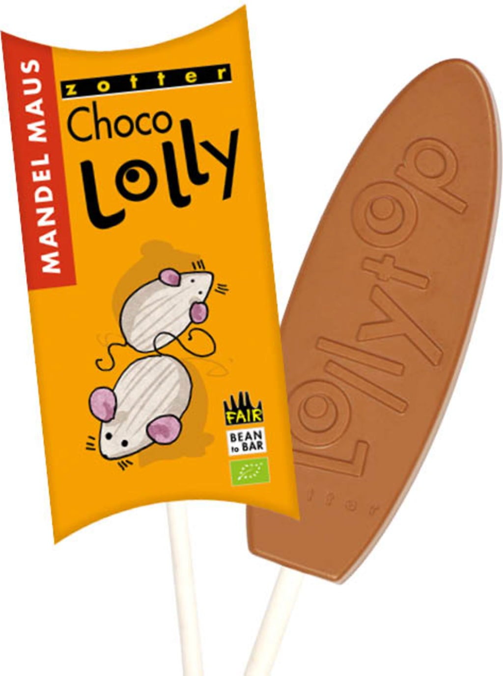 Zotter Schokoladen Bio Choco Lolly "MandelMaus" - myszka migdałowa, 20 g
